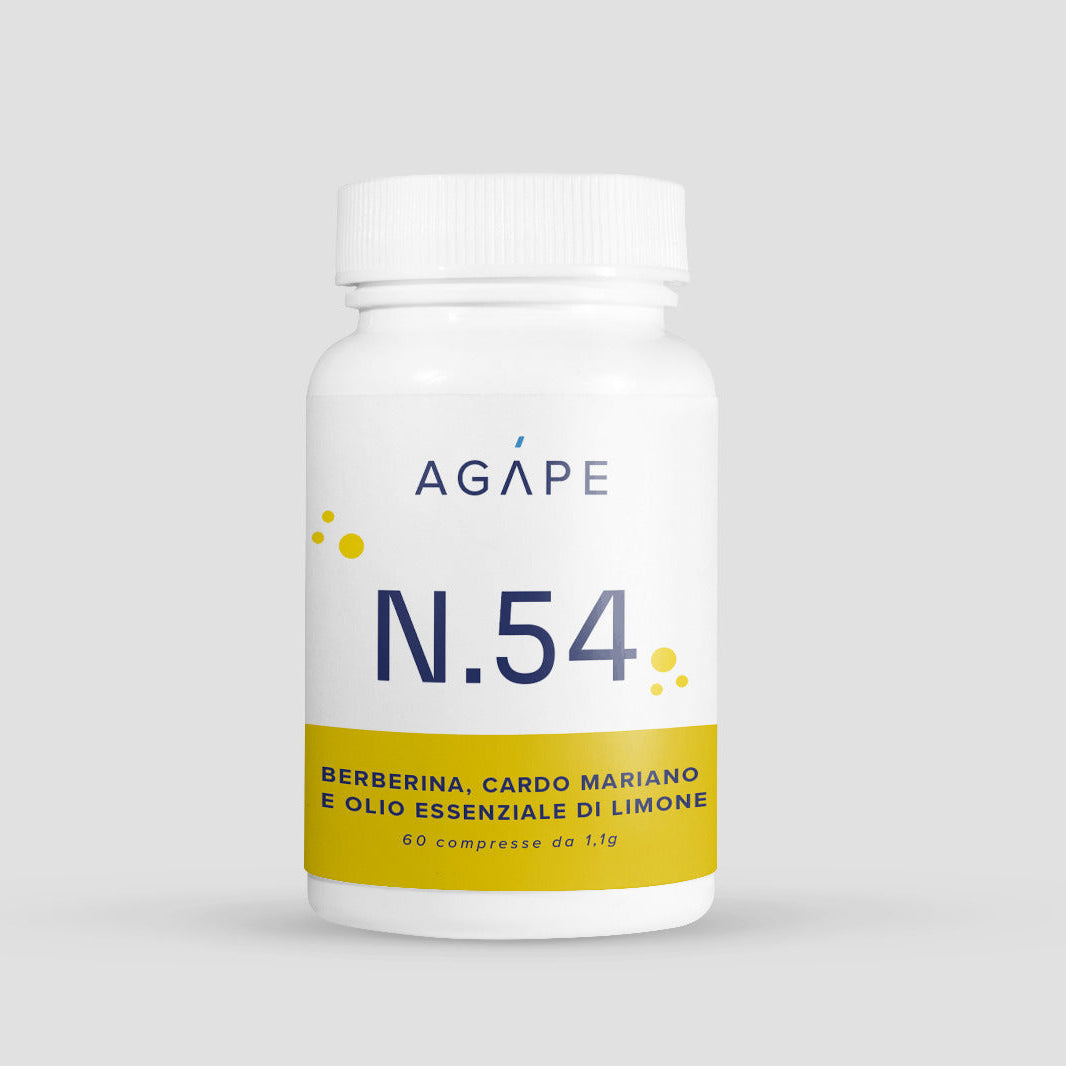AGAPE N.54 è pensato per sostenere il metabolismo epatico, favorire la digestione, regolare il transito intestinale e contribuire al benessere cardiovascolare.